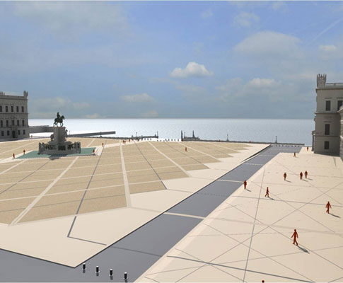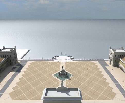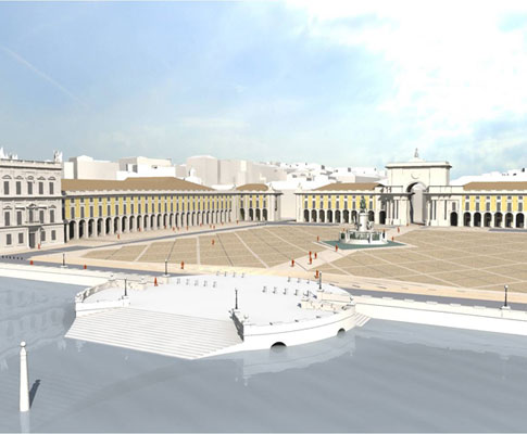 Até ao final do séc. XIX, o Terreiro do Paço não estava pavimentado: era, como o nome indica, uma praça de terra. Foi essa memória que Bruno Soares quis manter no trabalho que desenvolveu para a Sociedade Frente Tejo.