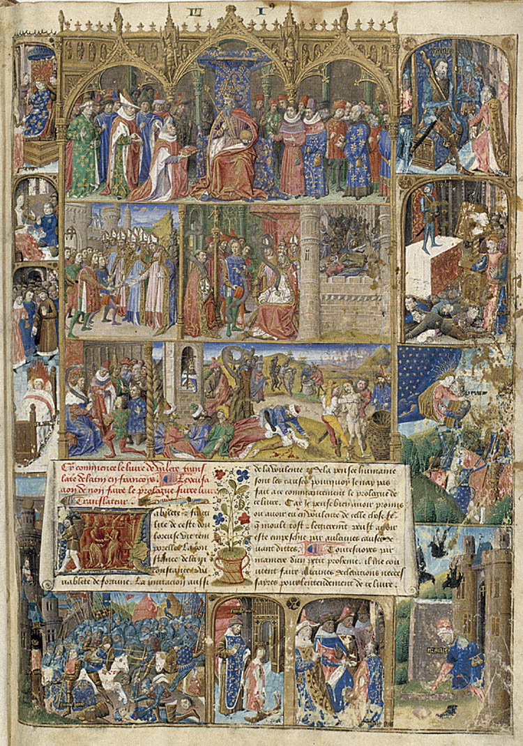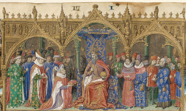 Simon de Hesdin apresenta a sua tradução de "Facta et dicta memorabilia" de Valerius Maximus a Charles V, Rei de França (detalhe)