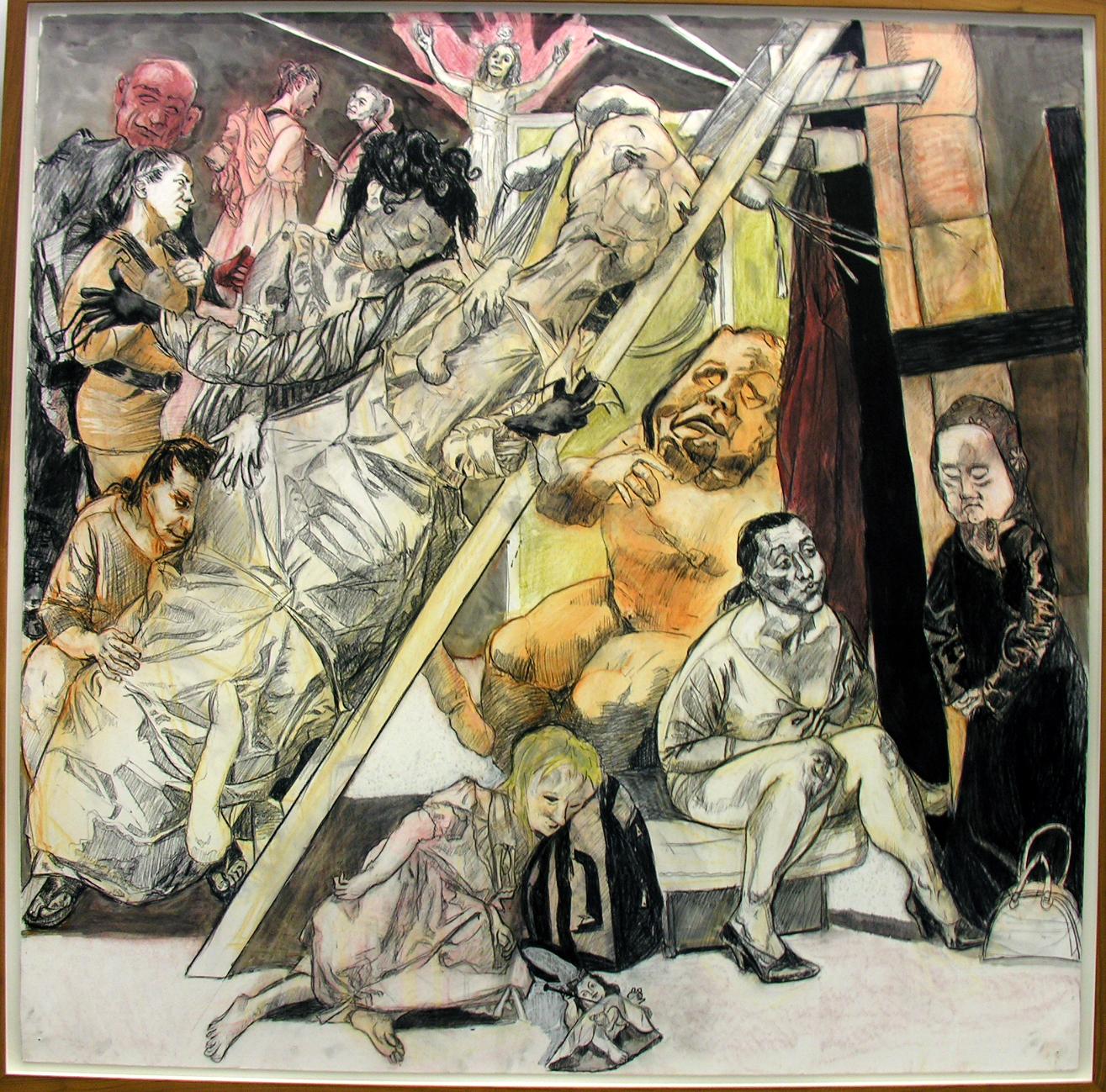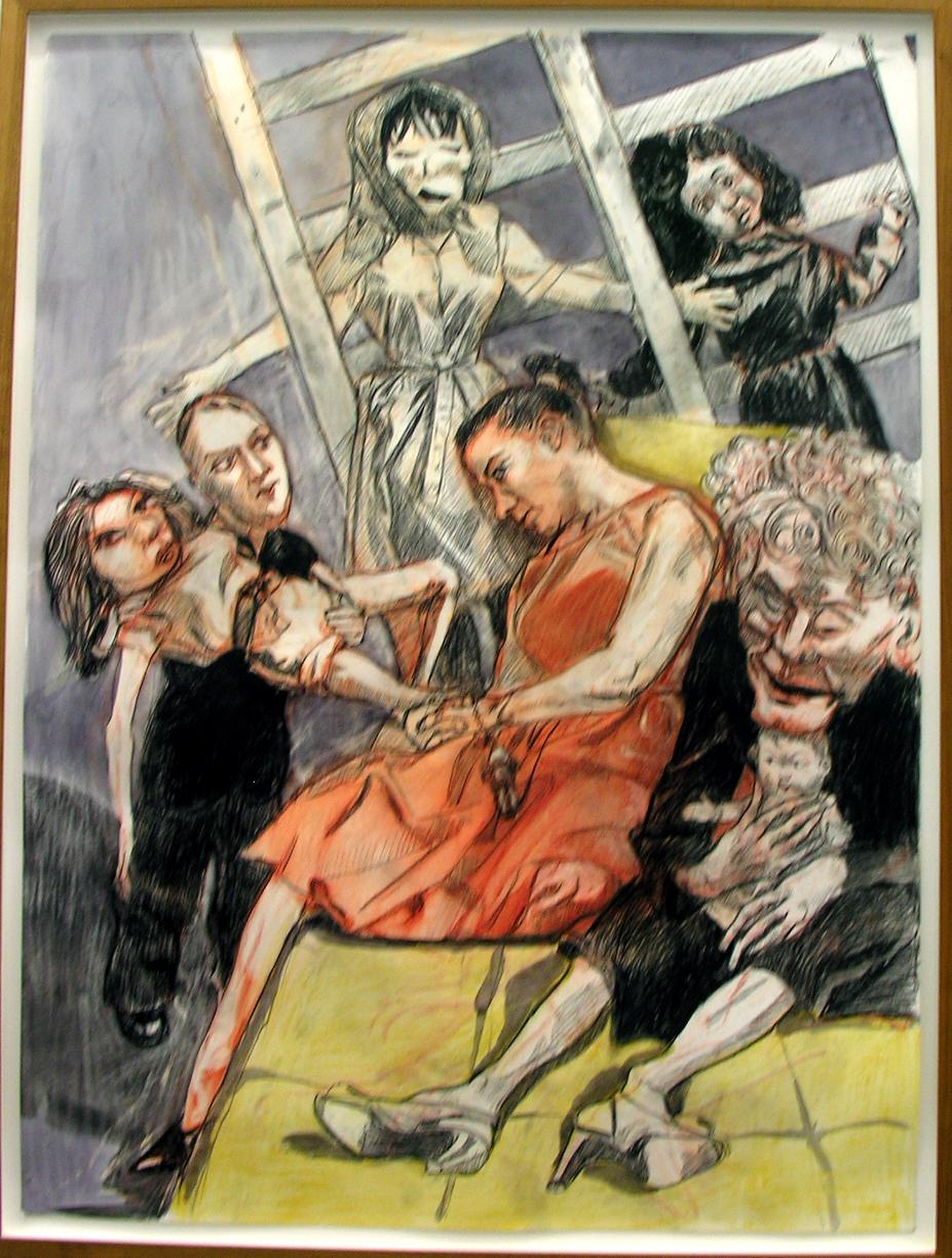 Human Cargo - Tríptico, 2008. Colecção Marlborough Fine Art, Londres. Lápis conté e aguada sobre papel