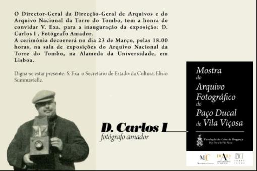 A exposição “D. Carlos I, fotógrafo amador” patente na Torre do Tombo até Julho, integra 46 fotografias, a maioria assinadas e legendadas pelo próprio monarca, mas também fotografias tiradas pela Rainha, sua mulher, D.ª Amélia, e os filhos, o Príncipe Real D. Luís Filipe e o Infante D. Manuel (futuro D. Manuel II, último a ocupar o trono português).