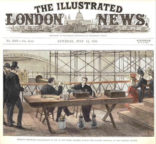 Aquela que se considera ser a mais antiga gravação áudio conhecida, foi realizada durante a performance do Oratório ‘Israel in Egypt’, na nona edição do Great Triennial Handel Festival at the Crystal Palace, a 29 de Junho de 1888.