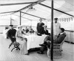 Mas é sobretudo no Piquenique, que os nossos olhos se fixam plenos de curiosidade. Como fundo, uma extensa vista Oeste sobre o Funchal, a partir da Quinta do Palheiro Ferreiro, propriedade do Conde de Carvalhal4, que o pintor representou com a família e alguns criados em primeiro plano, fazendo um piquenique ao ar livre. Uma intencionalidade que lhe fica bem, já que pugnara pelo ar livre, num paisagismo recortado de romantismo, atravessado por inspirações naturalizantes. Lembremo-nos aqui de Os cinco pintores em Sintra, de Cristino da Silva, onde, e não por falta de oportunidade, se colocou Anunciação no centro da composição. Havia sido o porta bandeira dessa pintura, que se pretendia em contacto directo com a natureza. FCS