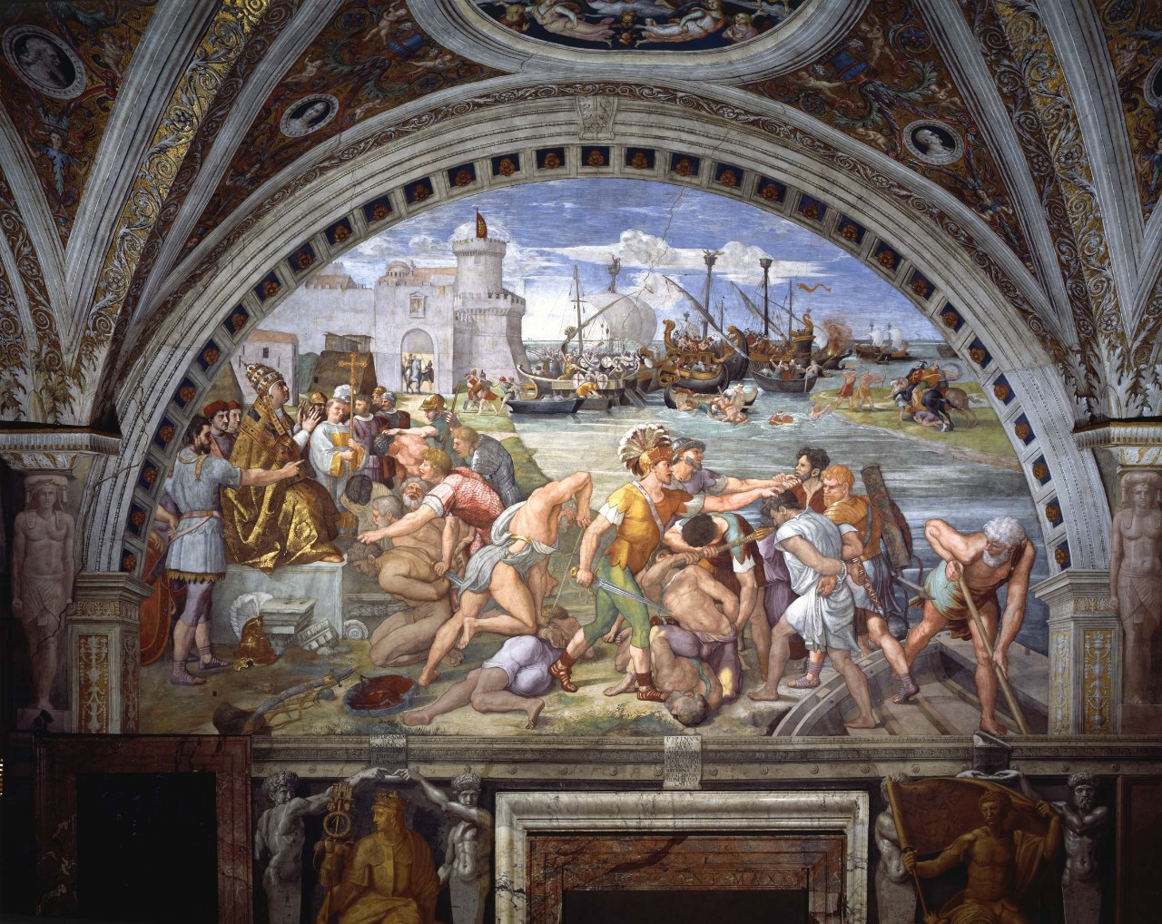 The Battle of Ostia, which in 849 saw the troops of Leo IV (pontiff from 847 to 855) opposed to the hordes of the Saracens, celebrates the miraculous victory of the papal armies and also refers to the crusade against the infidels encouraged by Pope Leo X (pontiff from 1513 to 1521).