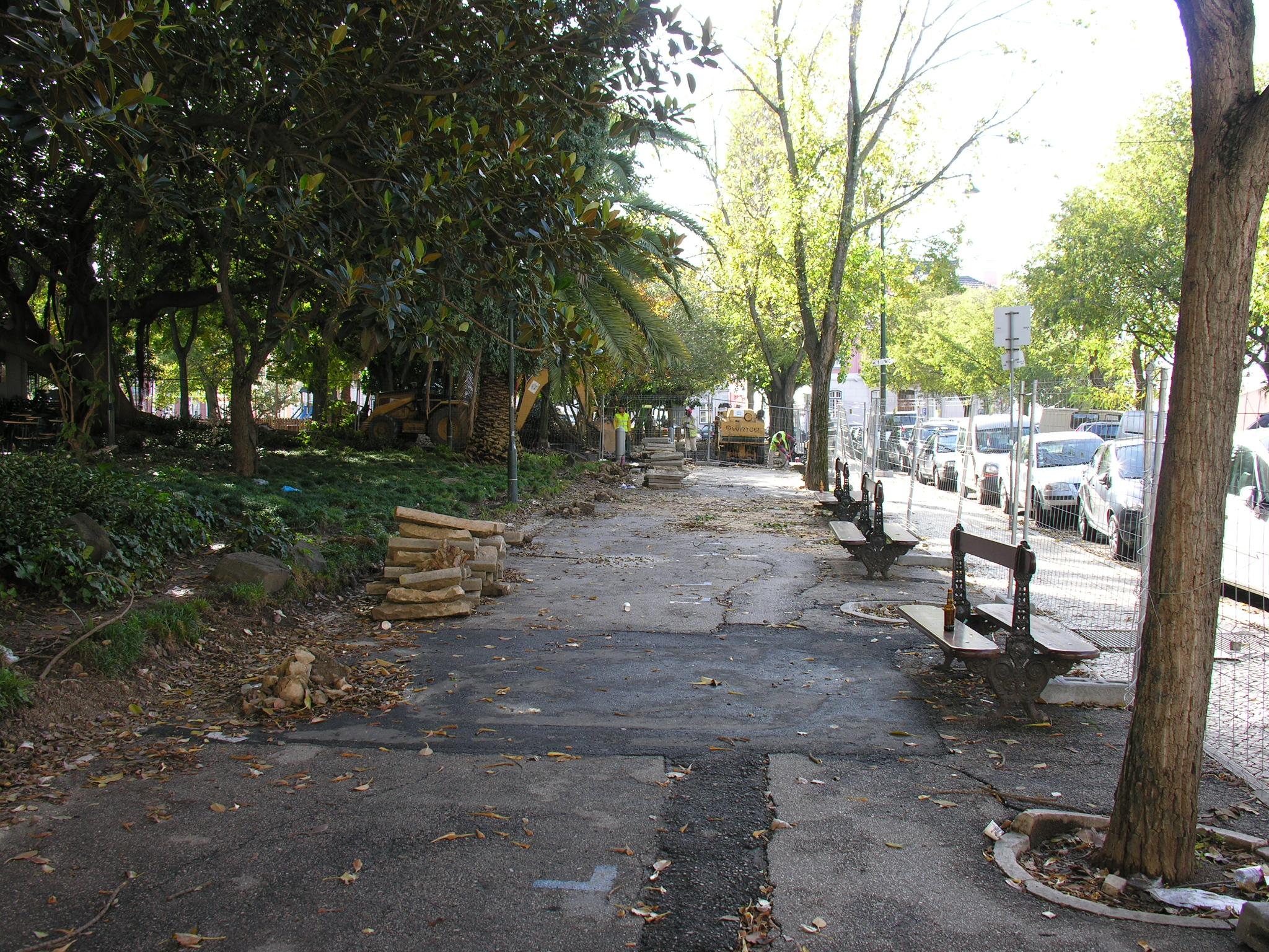 se um mero restauro ou uma intervenção minimalista significa abater todas as árvores de alinhamento, como estava previsto, e parte considerável das do interior; destruir, através do uso, sem quaisquer cuidados, de maquinaria pesada -qual elefante em loja de porcelana- todas as caleiras em calçada, tampas de sumidouros, os próprios sumidouros; retirar todos os gradeamentos de protecção dos canteiros; destroçar as relvas; ferir as raízes das Ficus macrophylla, que são árvores classificadas; rebentar tampas de saneamento, etc., então há que perguntar o que será uma intervenção “maximalista”.