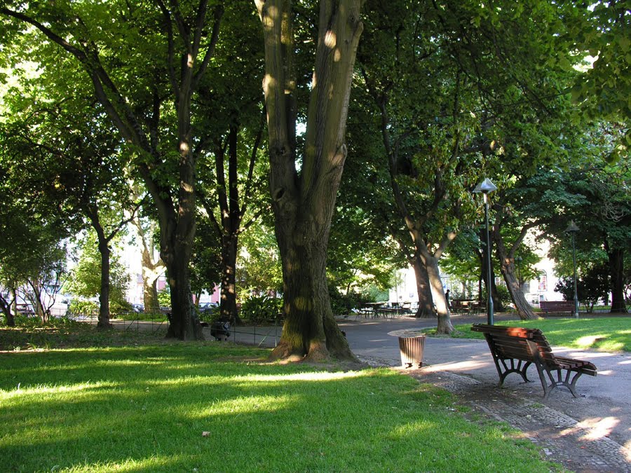 Bancos decrépitos, árvores moribundas a pedir motoserra, uma tristeza! Teimosamente, uns quantos resistentes por lá vagueavam, acompanhados pelo melhor amigo, outros, vagarosamente, saltitando de banco em banco em busca da melhor sombra para a sesta; Os velhotes, que passavam tardes inteiras a jogar às cartas, eram, apesar de tudo, os que mais pareciam indiferentes ao perigo de o céu lhes cair em cima da cabeça.
