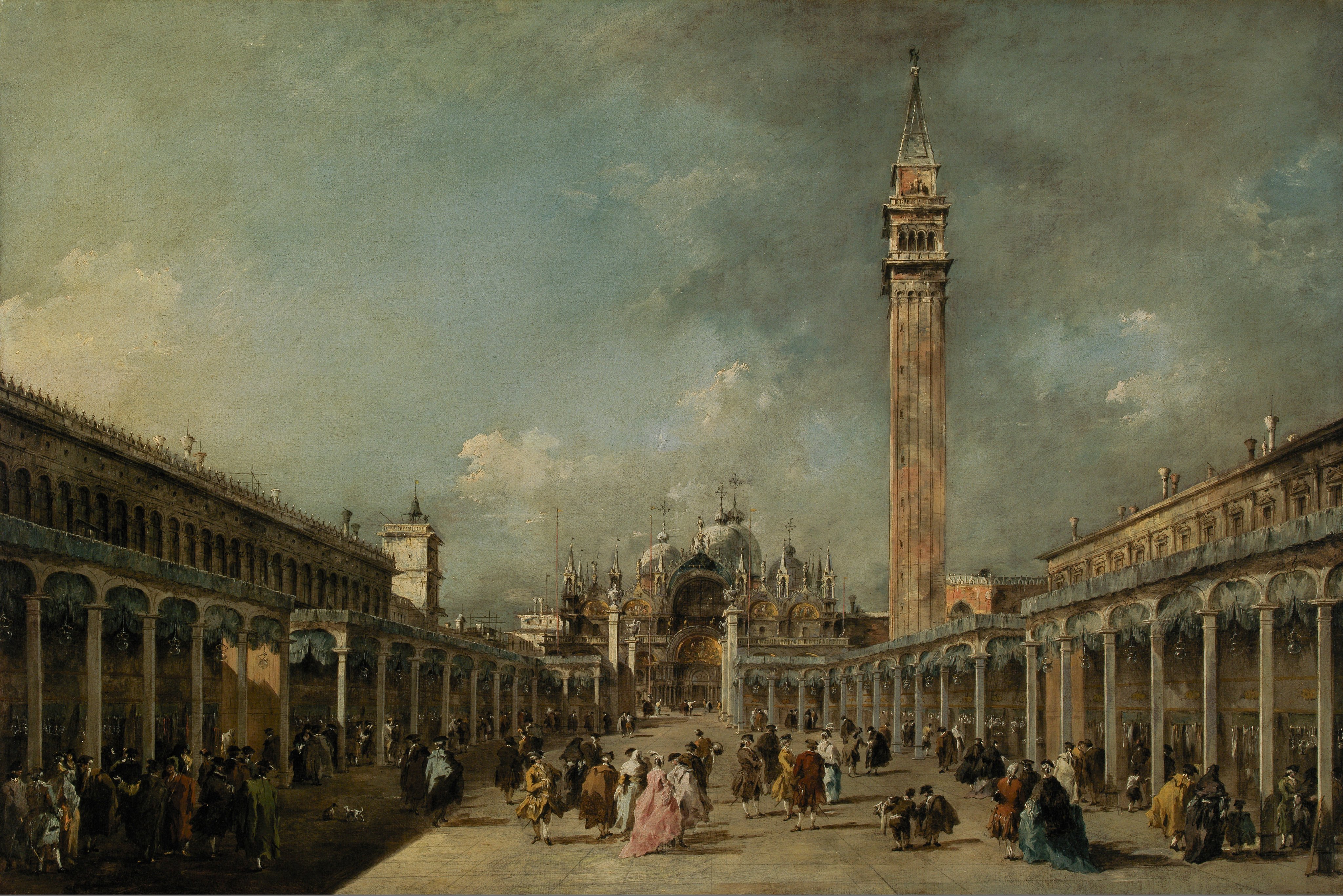 Considerada uma das obras-primas de Guardi, a veduta representa a Praça de São Marcos decorada para a realização do mais sumptuoso festival de Veneza, a Festa della Sensa. Este acontecimento vivia no Dia da Ascensão a cerimónia de celebração do casamento simbólico entre Veneza e o mar, evocação da vitória longínqua que dera à cidade o controlo naval do Adriático.