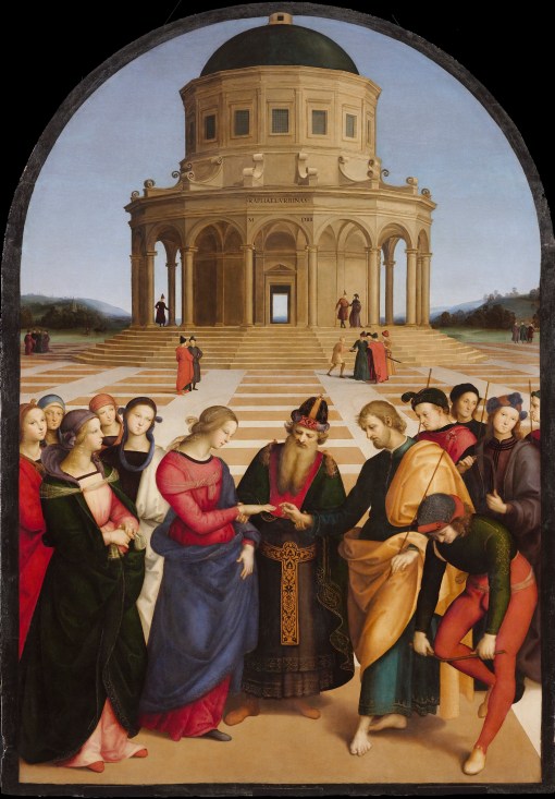 No dia em que passam 500 anos da morte de Rafael, a par de Leonardo da Vinci e de Miguel Ângelo, um dos grandes mestres do Renascimento, escolho o retábulo que o genial artista executou em 1504, Lo Sposalizio della Vergine – O Casamento da Virgem.