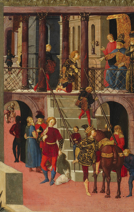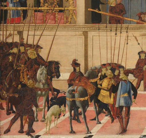Most of the tale is told according to the epic poem Argonautica written in Greek by Apollonius of Rhodes and studied in the Medici circle. Vernacular versions supplied some of the details, and in this sense the panels resemble those painted in celebration of the Tornabuoni-Albizzi marriage some years later, to which Biagio d’Antonio also contributed.