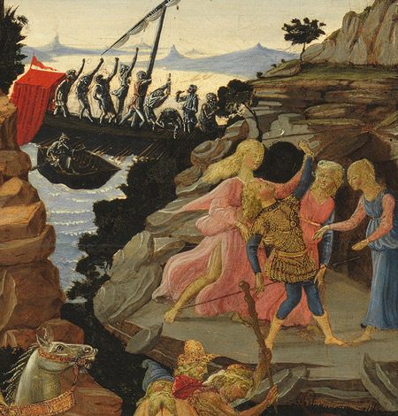 Scenes from the Story of the Argonauts, cassone panel, ca. 1465 (left)